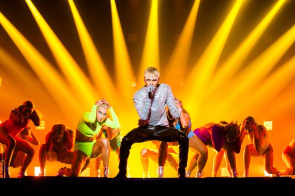 Перше відділення шоу Барських відкрив одним з головних треків 2018 року - "Сделай громче" і продовжив хітом "Танцевать". Після чого стало зрозуміло, що зі звуком щось пішло не так і, вибачаючись, артист пішов на бекстейдж, передавши слово Алану Бадоєву. Він повідомив про проблеми зі звуком, пов'язані з пошкодженням акустичного кабелю. Технічну несправність вдалося оперативно усунути і концерт почали заново.