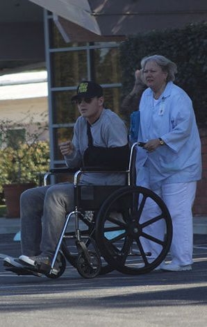 Папараці зробили знімки співака Олексія Воробйова 2 лютого. На фото видно, як невідома жінка підвозить Воробйова в кріслі-каталці до автомобіля Cadillac Escalade з каліфорнійськими номерами. Вид у хлопця виснажений, ліва рука підвішена на спеціальному бандажі. Очевидно, вона нерухома.