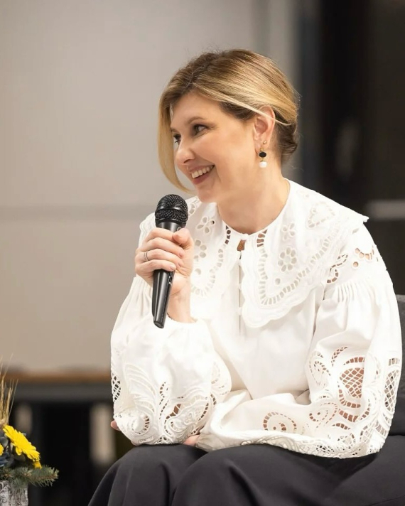 Для візиту в суботню школу "Рукавичка" дружина президента обрала стильний образ.