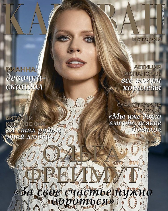Ведуча програми "Новий інспектор Фреймут. Міста", яка вийде на "1+1" цієї осені, Ольга Фреймут дала перше розгорнуте інтерв'ю після народження другої дитини і прикрасила обкладинку жовтневого номера журналу "Караван історій".