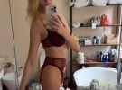 Зірка постала в бордовій білизні з поясом, яка підкреслила її ідеальну фігуру.