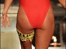 42-річна Памела Андерсон вдягла червоний свій знаменитий купальник, в якому вона прославилася після участі в телешоу "Бейвотч" в 1992 році. Вчора Памела Андерсон відтворила відомий образ, вийшовши на подіум у Майамі.