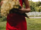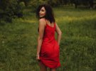 Богдан одягла червону сукню-комбінацію і білі кеди. Вона зробила натуральні кучері й нюдовий макіяж.