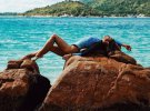 Нещодавно вона вирушила відпочивати на Сейшельські острови. В Instagram гімнастка опублікувала знімки, де позує на пляжі Індійського океану, еротично вигнувшись на каменях.