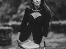 На фото жінка еротично вигинається лише в чорних трусах, демонструючи пружні сідниці. Ульянова знялася топлес на ліжку.