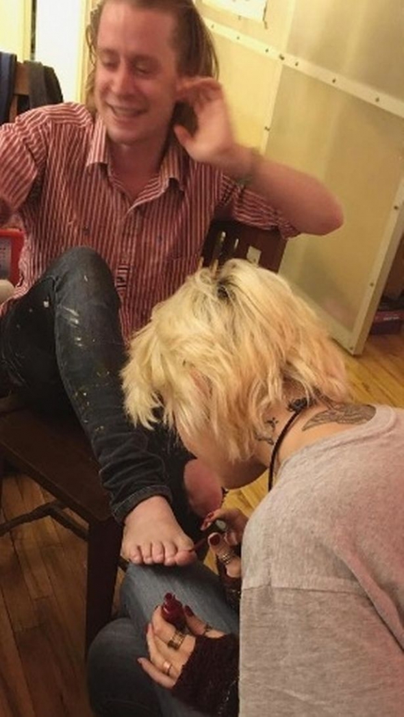 На своїй сторінці в Instagram дівчина опублікувала кілька фото, на яких видно, як вона робить педикюр Маколею. Причому, це заняття забавляє як Калкіна, так і саму Джексон.