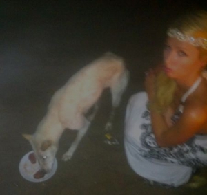 Періс вирішила, що бідна тварина дуже голодна і, недовго думаючи, відправилася в один з найдорожчих ресторанів острова, щоб замовити шеф-кухарю блюдо для бездомної тварини. Хілтон повідомила у своєму мікроблозі: "Побачила бідного безпритульного пса на пляжі біля ресторану. Він мене так засмутив. Ось ми й замовили йому філе міньйон. Йому сподобалося".