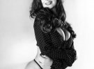 Роуз позувала в чорному у білий горошок кроп-топі з величезним декольте. На обличчі Демі був яскравий макіяж.