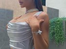 На серії знімків наймолодша мільярдерка еротично позувала в сріблястому топі і джинсах. Образ доповнили намисто й браслет.