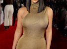 Кім перед гостями і фотографами з'явилася в облягаючій фігуру сукні золотистого відтінку, що дозволила роздивитись всі вигини її фігури. Нова стрижка залишилася при ній - ніякого нарощеного волосся.