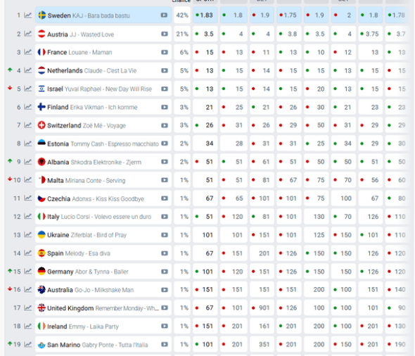Після виступу учасників першого півфіналу Євробачення шанси України на перемогу покращилися.