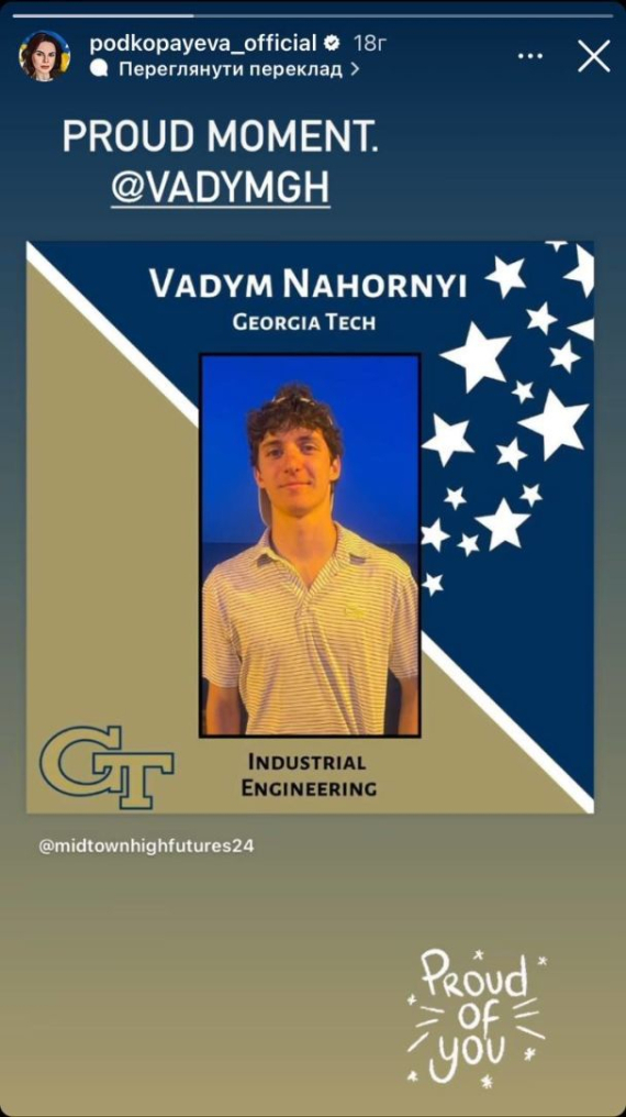 Вадим навчатиметься на інженера в університеті Georgia Tech.