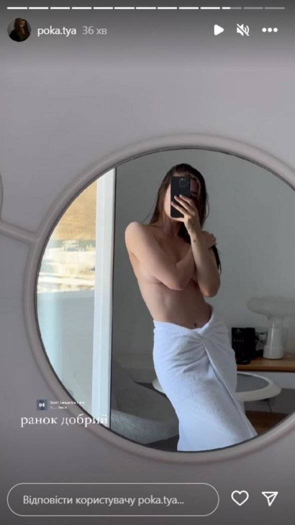 На фото Полтавська прикрила руками груди, а низ закрила рушником. Судячи з образу, блогерка зробила фото відразу після душу.