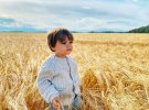 Фотосесію співачка провела з малюком посеред поля пшениці. На фотографіях зірка із сином позувала у вбраннях блакитного кольору.