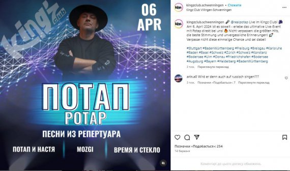 Український репер і продюсер Потап виступив у Німеччині в клубі, де проводилися "російські ночі".
