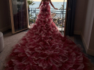 На червону доріжку зірка вийшла в рожевій сукні з величезним шлейфом, який доводилося притримувати її помічникам.