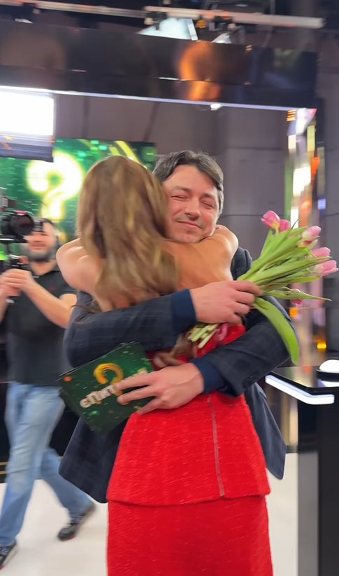 Колишні співведучі міцно обійнялися, після чого Нікітюк запитала "Чого так мало тюльпанів?". На що Притула відповів: "200 гривень! То знаєш, губу теж трохи не розкатуй".