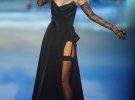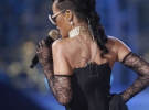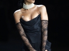 Подіум з "ангелами" розділила і Ріанна. Співачка вийшла на сцену в чорній сукні з корсетом і довгим вирізом, котрий не приховував її стрункі ноги і панчохи. РіРі заспівала композицію Fresh Out the Runway під бурхливі оплески залу і за лаштунками зізналася, що дуже рада бути учасницею найбільш незвичайного модного шоу року.