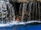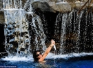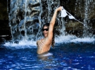 Ріанна продемонструвала витончену фігурку, лежачи пластом на серфі, потім занурилася в прозорі води. Проте найбільш "гарячими" виявилися фотографії, зроблені біля водоспаду. Там спекотна красуня позує у білому купальнику і пустує під бризками. В один момент її радість, мабуть, досягла такої межі, що виконавиця сміливо зірвала з себе бюстгальтер. Благо, розум все ж взяв гору, і Ріанна встигла прикрити свої принади рукою.