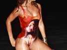 В оригінальному купальнику всесвітньо відома своєю відвертістю рудоволоса красуня в карибській воді і стрибала, і танцювала. А головне усе це робила із пляшкою пива у руці.