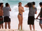 Красуня в оточенні знімальної групи позувала топлес на березі океану.