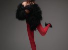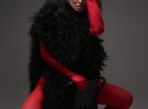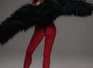 На кадрах, опублікованих в Instagram, знаменитість позувала топлес і в червоних колготках, поверх яких одягла чорні труси. Образ доповнила червоними рукавицями і хутряній накидці.
