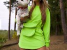 Телеведуча Леся Нікітюк позувала в кислотній мінісукні, яка підкреслила її ідеальні ноги. У комплекті до вбрання ведучої була сумочка на пояс.