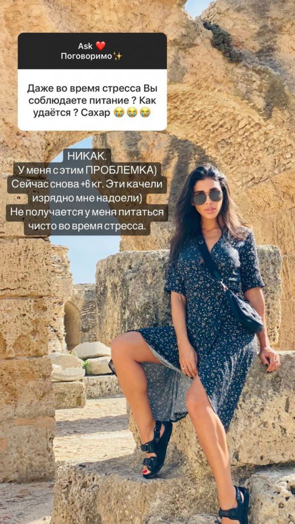 "У мене з цим проблемка. Зараз знову плюс 6 кілограмів. Ці гойдалки неабияк мені набридли. Не виходить у мене харчуватися чисто під час стресу", – пожалілася виконавиця.