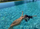 Найстарша із сестер Кардаш'ян 41-річна Кортні також постала в сріблястому. Зірка позувала в яскравому бікіні біля басейну і у воді, демонструючи свої пишні форми.