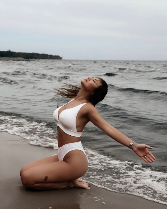 Цього разу акторка, яка активно працює над своєю фігурою в залі, влаштувала фотосесію біля Київського моря.