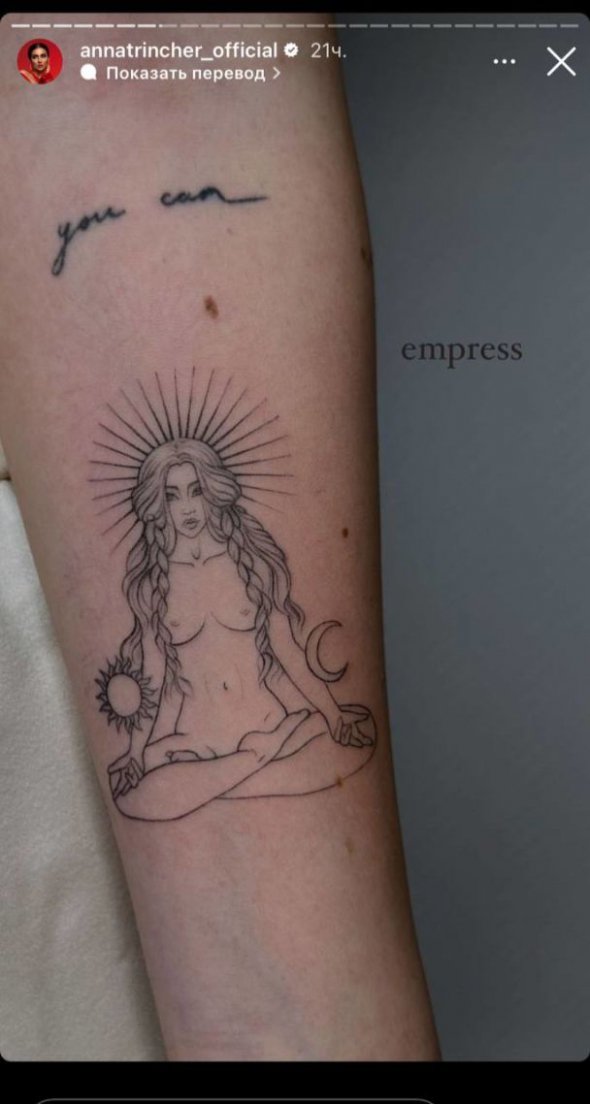 "У мене є напис, тепер буде сам символ. Імператриця – це символ справедливості, мудрості, розсудливості, символ перемоги добра над злом. Саме такий період у мене зараз", – пояснила.