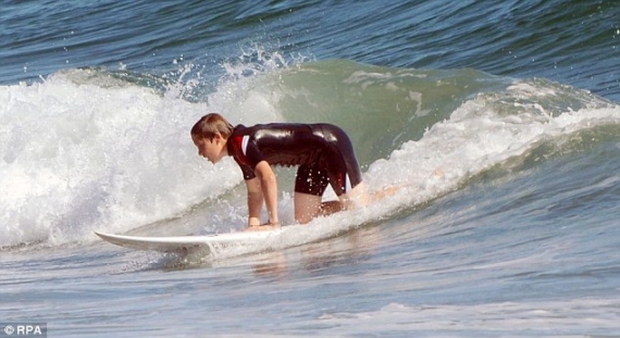 Старший син Девіда Бекхема 12-річний Бруклін почав брати уроки серфінгу в Малібу. Девід і сам не проти стати на дошку: фото футболіста, який підкорює хвилі, виклала в Twitter його дружина Вікторія, яка зараз зайнята доглядом за новонародженою дочкою.