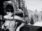 Зірка стала на лижи оголеною, позуючи серед снігів.
