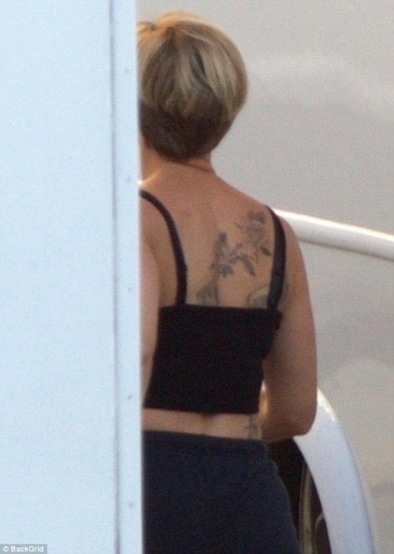 Скарлетт була вдягнута у лосини та топ, який не приховував величезне татуювання на спині.