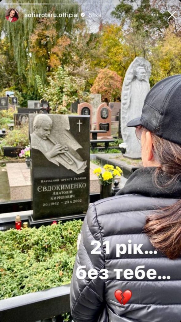 Як відомо, обранця артистки не стало 23 жовтня 2002 року. Йому було 60 років. У своєму Instagram знаменитісь опублікувала кадр, на якому стояла на Байковому кладовищі в Києві, де похований її коханий.