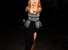 Наряд був незвичного крою, з глибоким вирізом до стегна та великим декольте, яке підкреслило пишні груди співачки. Образ знаменитості довершувала об'ємна зачіска, яскравий макіяж і чорні "човники".
