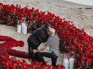 На пляжі, куди привів Баркер кохану, були сотні троянд, які напередодні виклали у формі серця та літер "Т" і "К". Романтики також додавали свічки у колбах.