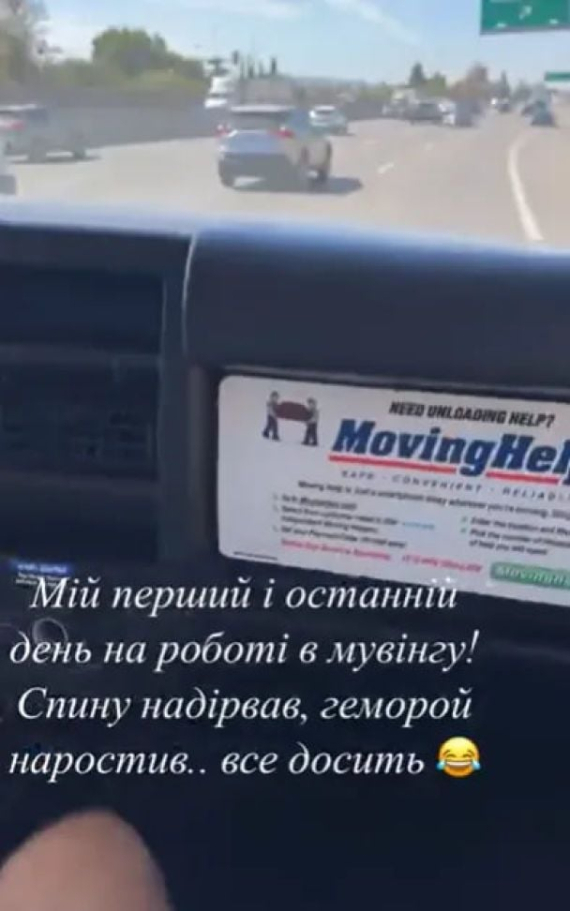 "Мій перший і останній день на роботі в мувінгу. Спину надірвав, геморой наростив. Усе, досить" - поскаржився він.