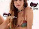Окремо дівчина показала, який вигляд має обкладинка журналу із її зображенням. На ній модель позує, сидячи у різнобарвному текстурному купальнику.