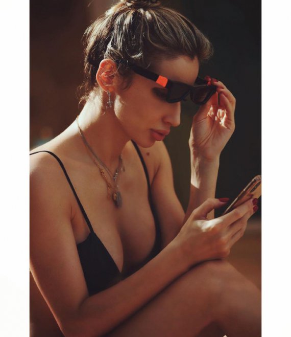 На одній зі світлин зірка постала в чорному бікіні, який ефектно підкреслив пишні груди. На фото Лобода тримала телефон та дивилась в екран.