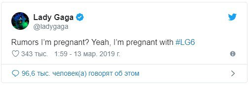 "Ширяться чутки, що я вагітна? Так, я вагітна – шостим альбомом", - написала співачка у Твіттері.