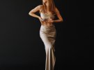 Зірка позувала в бежевому костюмі, який складався з короткого топу й подовженої спідниці. Знімки виклала в Instagram.