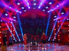 Співачка Тіна Кароль з'явилась на сцені у сексуальному вбранні. Вона підкреслила струнку фігуру латексною сукнею червоного кольору.