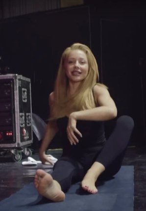 Таку розминку перед концертом Кароль робить під трек гурту Latexfauna Bounty, на який записала з колективом дует.