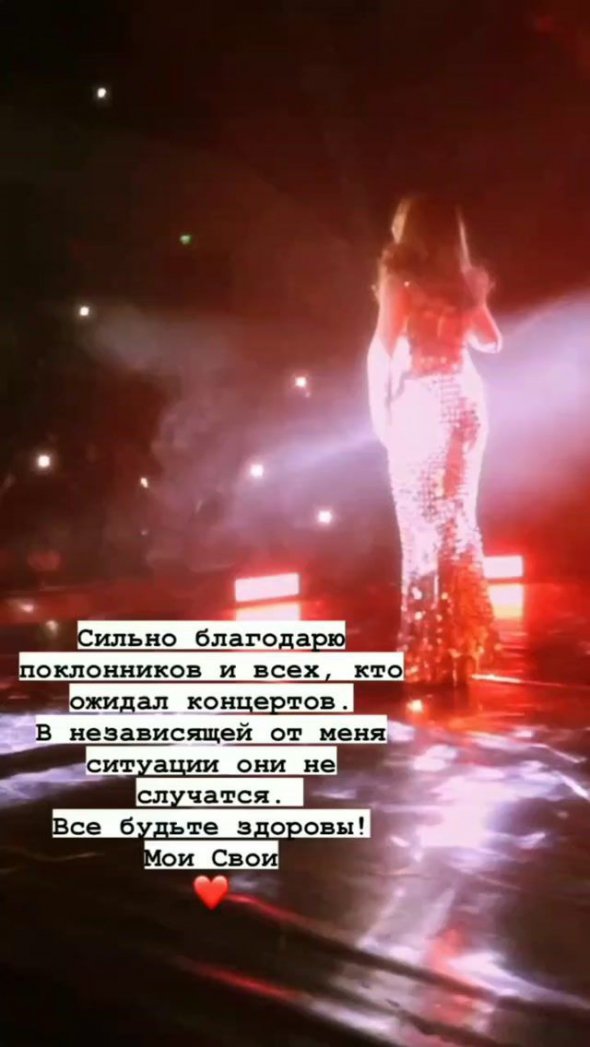 "Дуже вдячна прихильникам і всім, хто очікував на концерти. Через незалежну від мене ситуацію вони не відбудуться. Всі будьте здорові! Мої Свої", - написала Кароль.