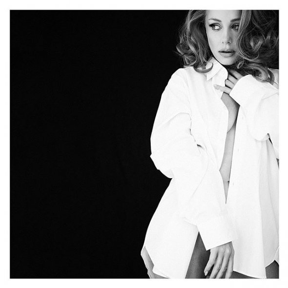 Чорно-білий знімок - справжній шедевр фотомистецтва. Тіна, вдягнена в білу сорочку на голе тіло, однією рукою чуттєво торкається шиї, а іншу опустила. Жінка спрямувала погляд убік, напіврозтуливши вуста. Композицію світлини зміщено вбік, що ще більше акцентує увагу на природності і красі співачки.