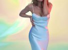 Зірка позувала в білій сукні-комбінації з глибоким декольте. Кадри виклала в Instagram.