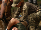 Жінка надавала допомогу потерпілому, накладала собі джгут і стріляла в мішень з різних позицій.