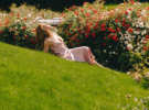 На кадрах, опублікованих в Instagram, артистка позувала в трояндах. Одягла рожеву сукню-комбінацію з глибоким декольте.