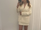 Образ доповнила легкими локонами, контрастним макіяжем та іміджевими окулярами.